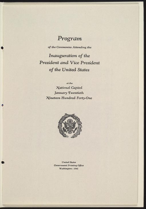 For an inside look into the order of the ceremony, view these 10 images of the Inaugural Program for President Roosevelt’s Third Inauguration as President of the United States: